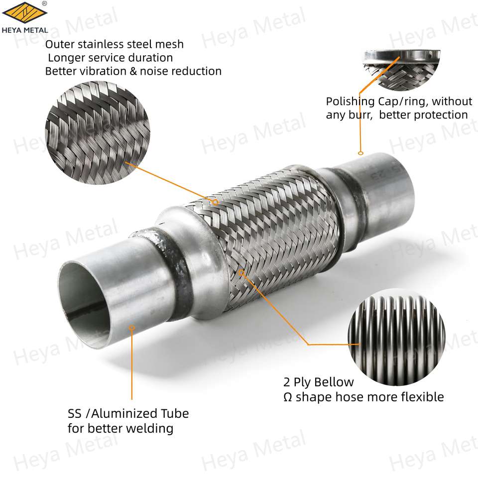 Tuyau flexible d'échappement en acier inoxydable 45*100*200 mm avec tube pour système automobile universel avec raccords et gaine intérieure