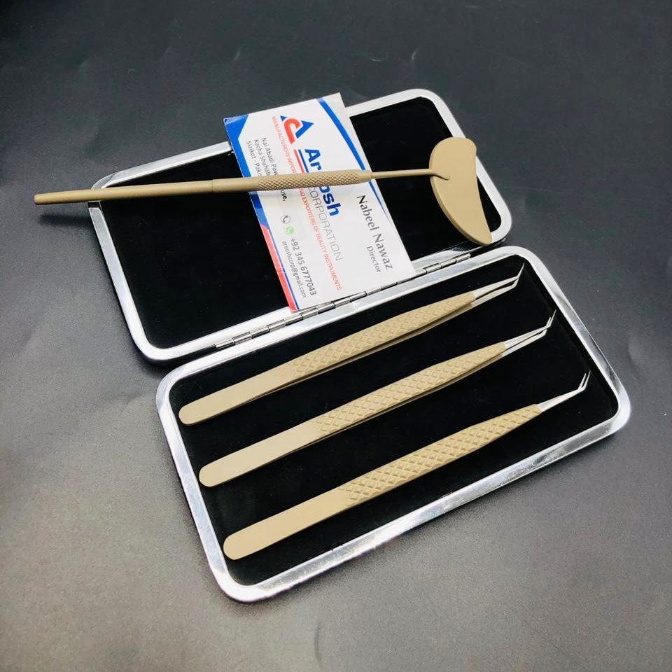 Haute qualité professionnel en acier inoxydable 45 degrés diamant poignée Extension de cils pince à épiler demi miroir brun pointu