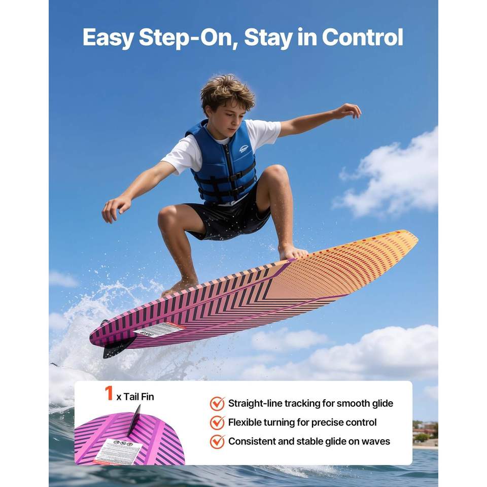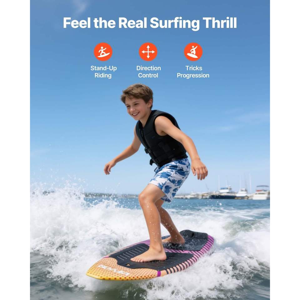 Planche de wakesurf de 45 pouces avec noyau en mousse EPS et coussin antidérapant en EVA, résistante aux UV, pour les jeunes, accessoire de planche à roulettes aquatiques