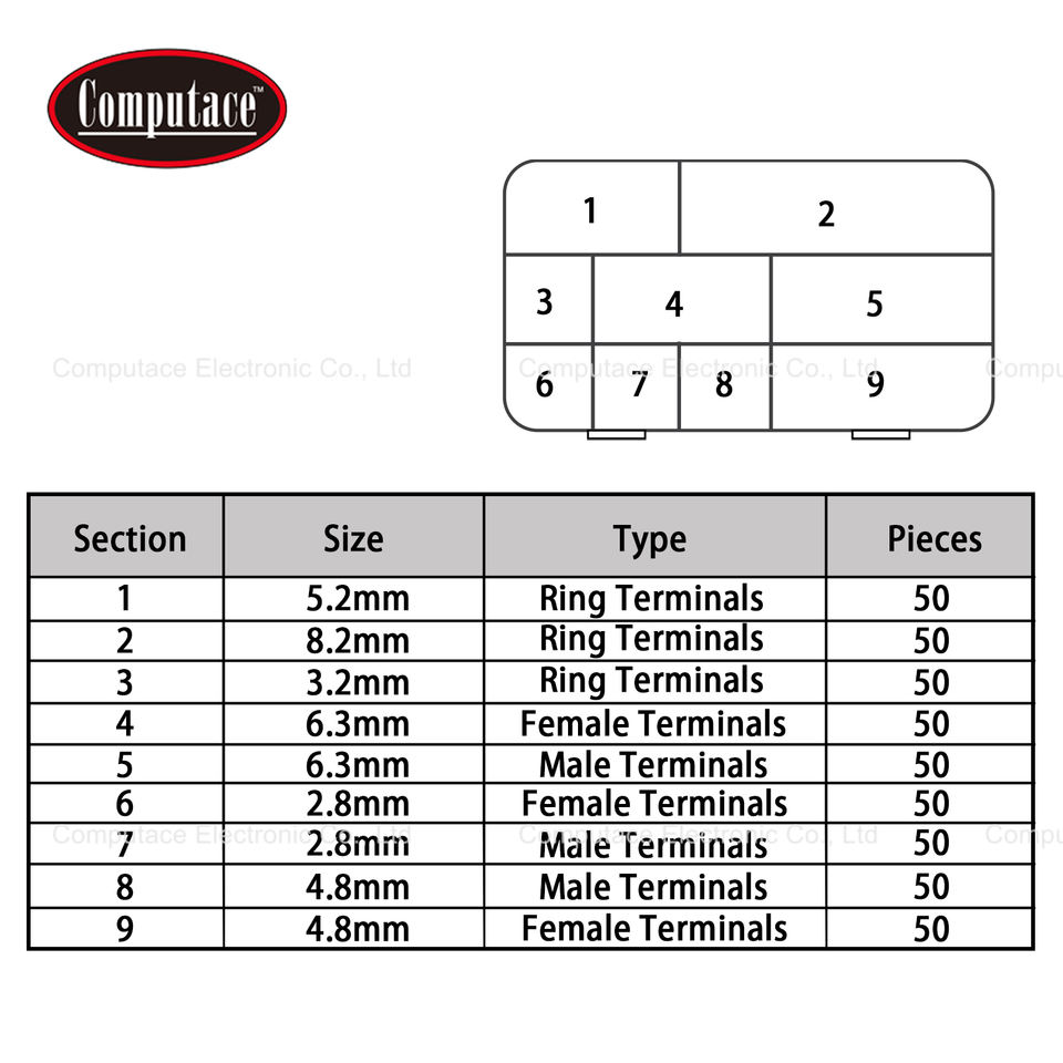 Description:450PCS Assorted Brass Crimp Terminal Kit