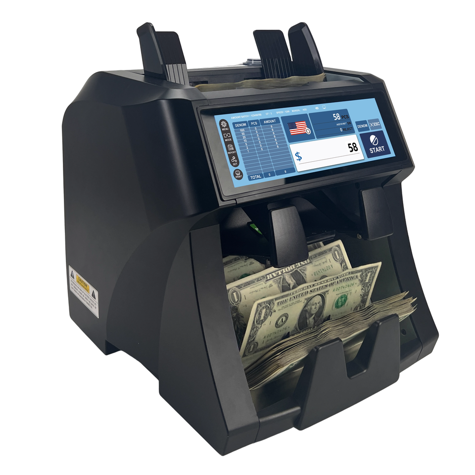 Compteuse de billets 450Q 2 CIS à écran tactile intégral, deux compartiments, trieur de billets de banque à valeur mixte, 1200 pièces/min, 200 pièces