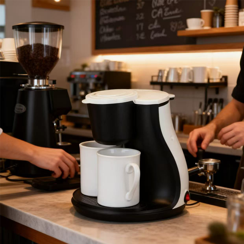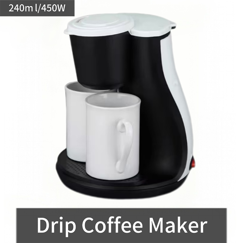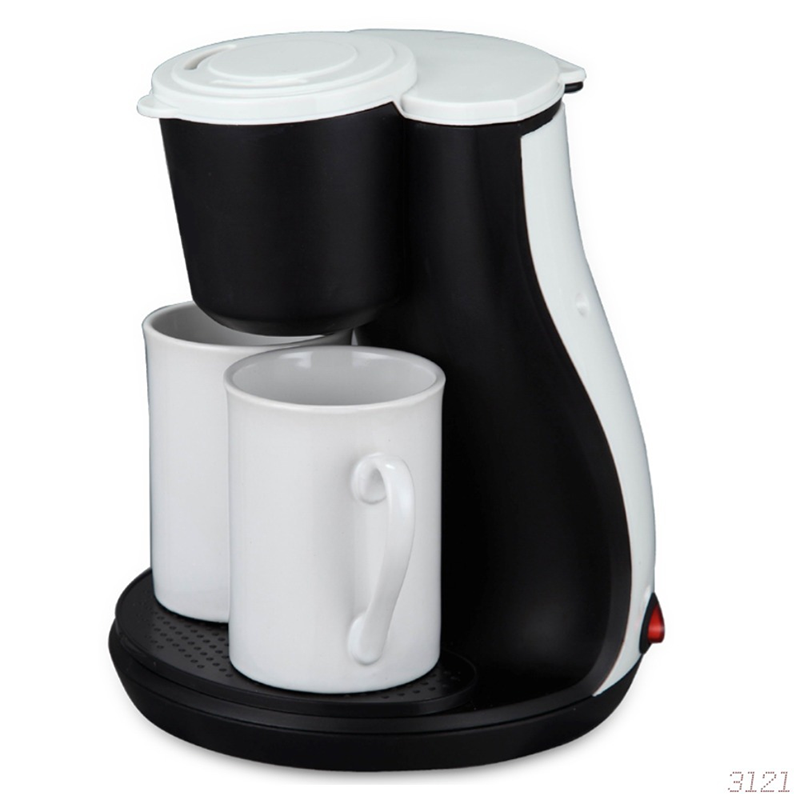 Cafetière à filtre 450W 240ml 2 tasses en porcelaine Panier filtrant amovible/Plaque de support Filtre permanent Indicateur lumineux marche/arrêt