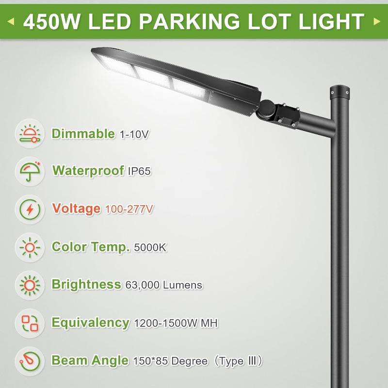 Réverbère LED 450W IP65 Protection contre les surtensions intégrée AC 85-265V 1000-1500W MH Equiv 63,000LM 5000K DLC pour