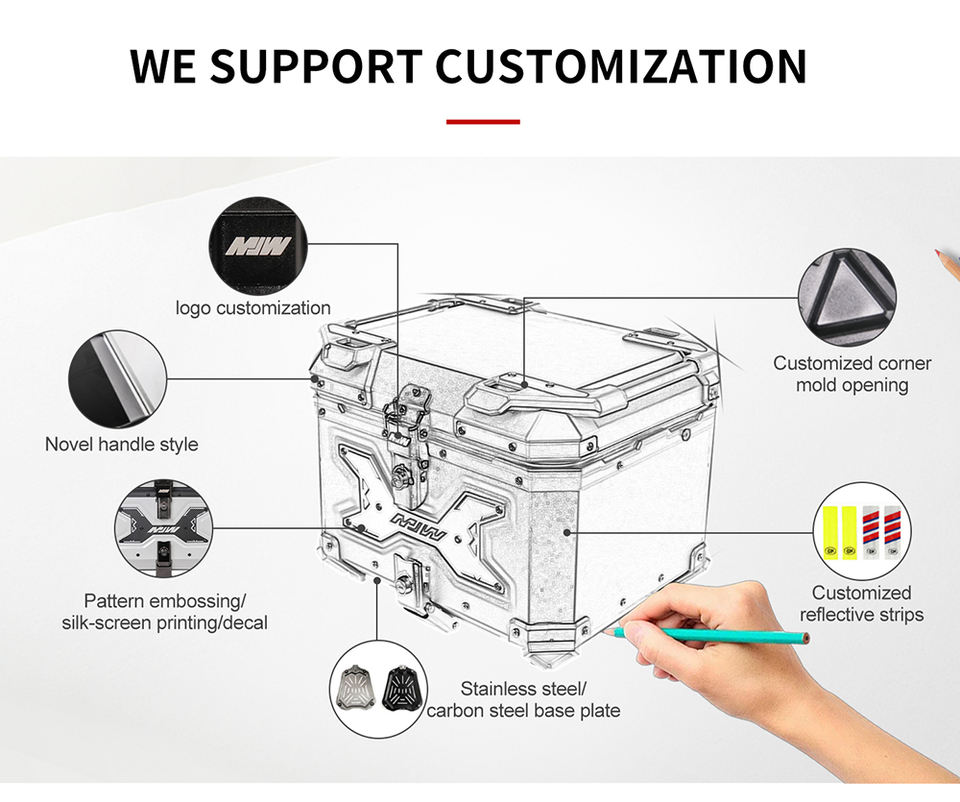 Ensemble de valises latérales pour coffre de moto 45L+38L, étanches, universelles, en alliage d'aluminium