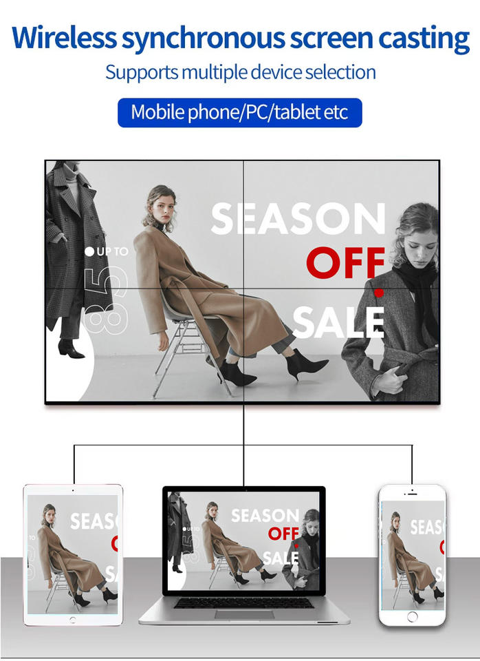 46 49 55 65 pouces mur vidéo lunette ultra-étroite 2x2 3x3 4x4 écran LCD intérieur 4K écran d'épissage publicitaire