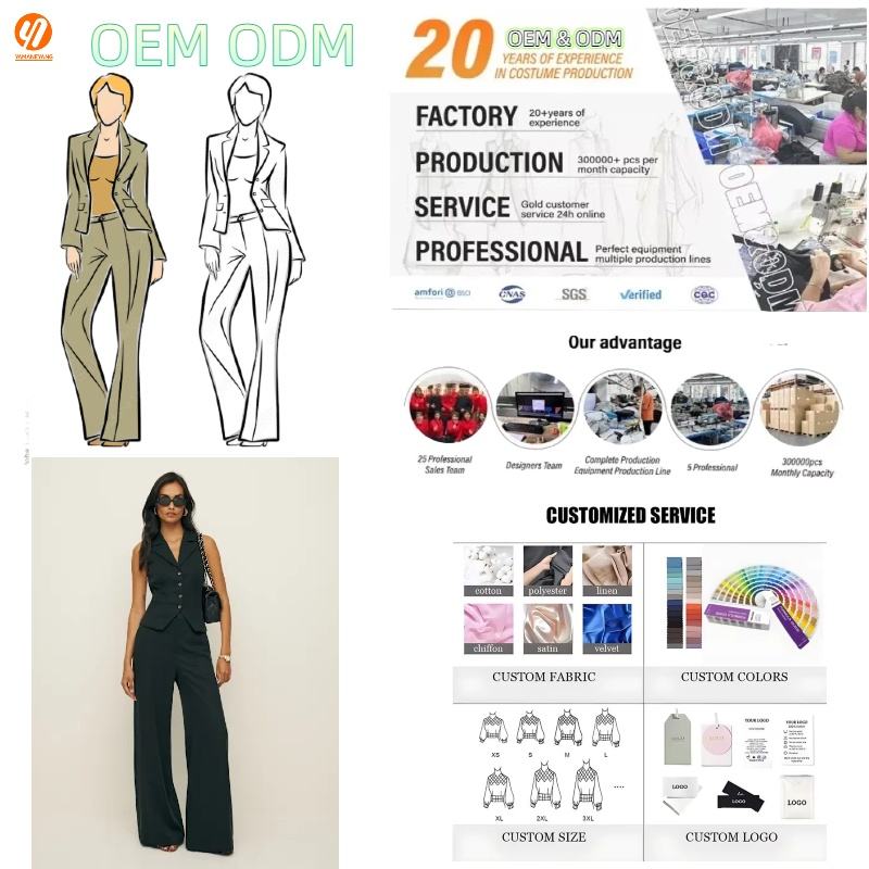 Ensemble pantalon et haut pour femme, col rabattu, sans manches, à lacets, couleur unie, coupe régulière, élégant, pour le bureau, 2 pièces