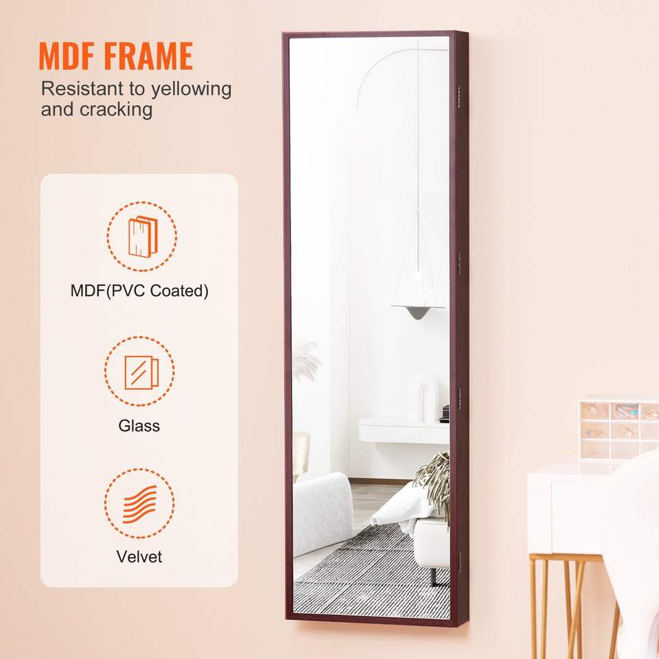Armoire à bijoux verrouillable de 47,05 pouces de hauteur avec miroir pleine longueur et fixation murale