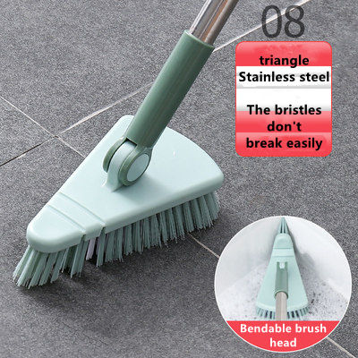Brosse à sol triangulaire rétractable à long manche de 47 pouces (120 cm), brosse pour aquarium, brosse à poils durs pour sol, coin