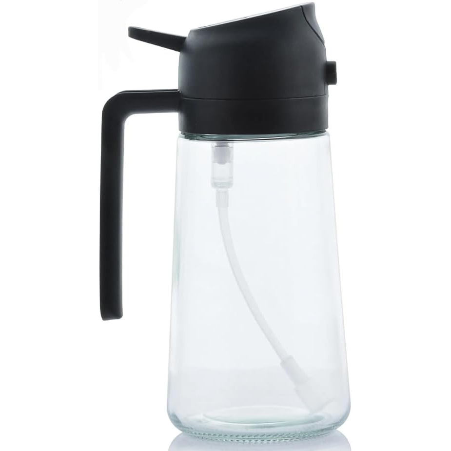 Bouteille Distributrice d'Huile d'Olive 2-en-1 de 470 ml en Verre et PP de Qualité Supérieure, Vaporisateur d'Huile Résistant à la Chaleur pour la Cuisson
