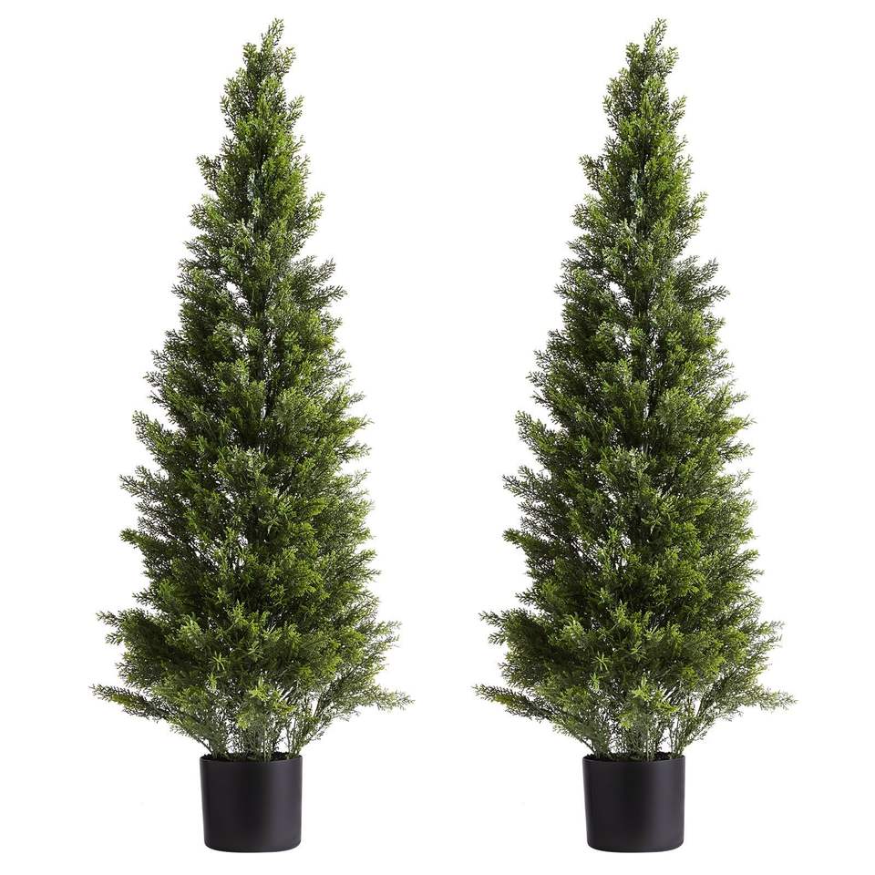 Ensemble de 48 pouces de arbres artificiels en cèdre, faux arbustes en pin, plantes pour la décoration intérieure et extérieure, montage facile, faux arbre en soie pour