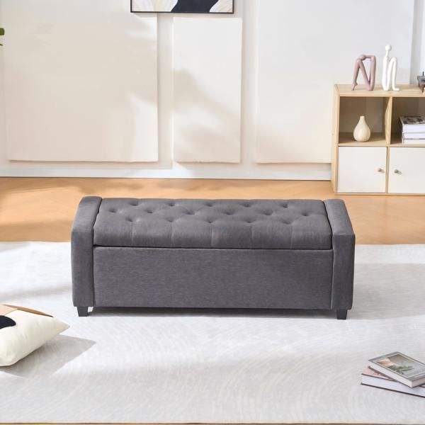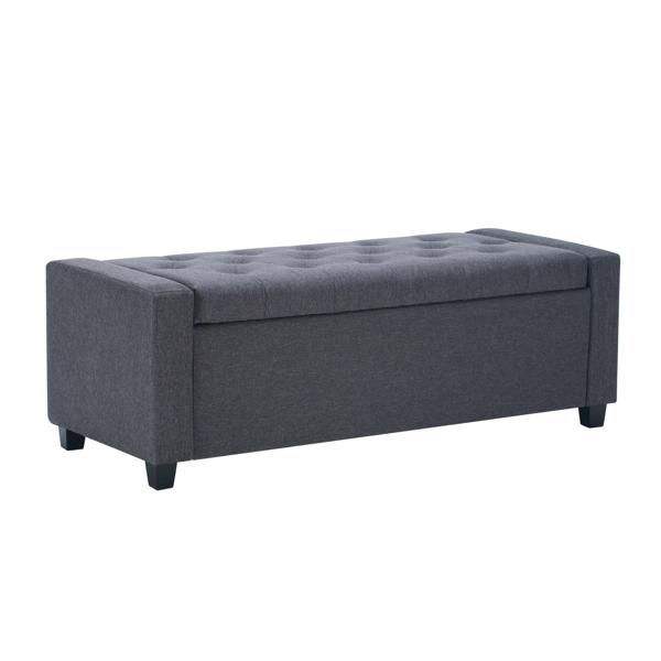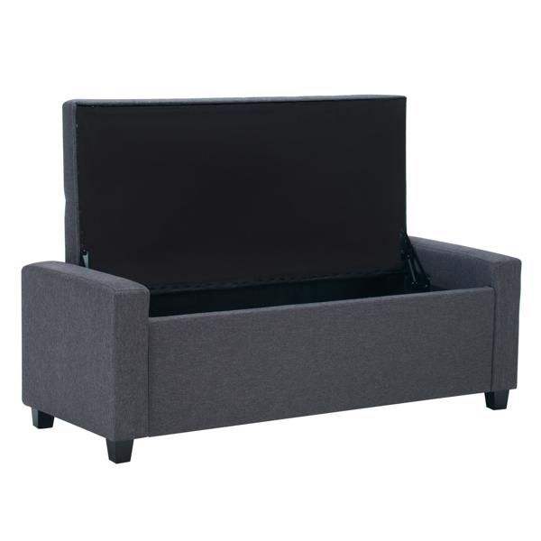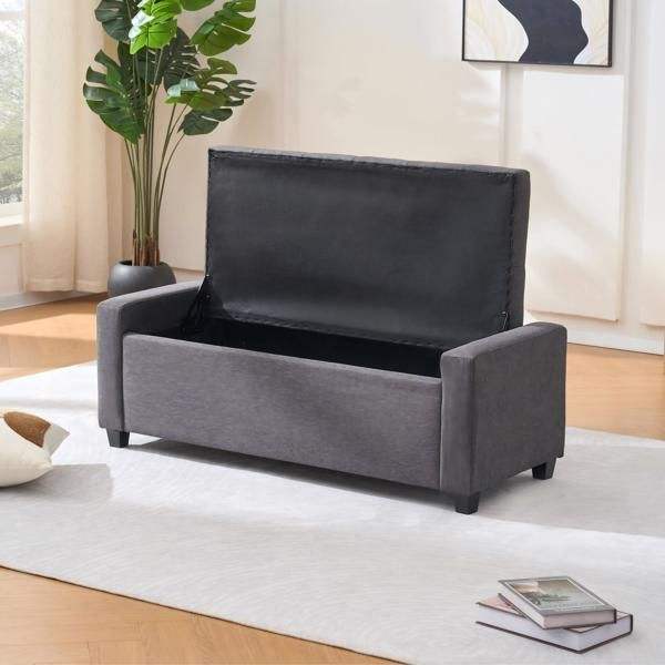Banc de rangement rembourré en tissu imitation lin de 48 pouces avec accoudoirs pour chambre, salon et entrée, idéal pour le bout du lit