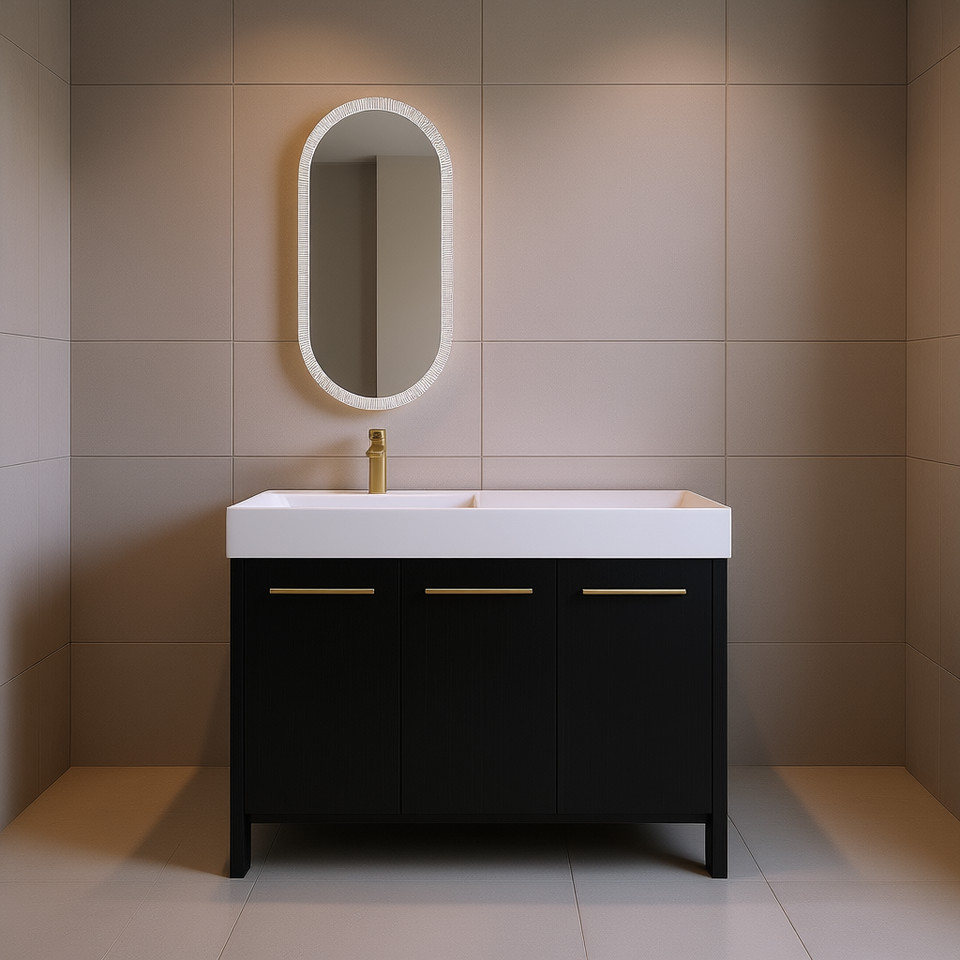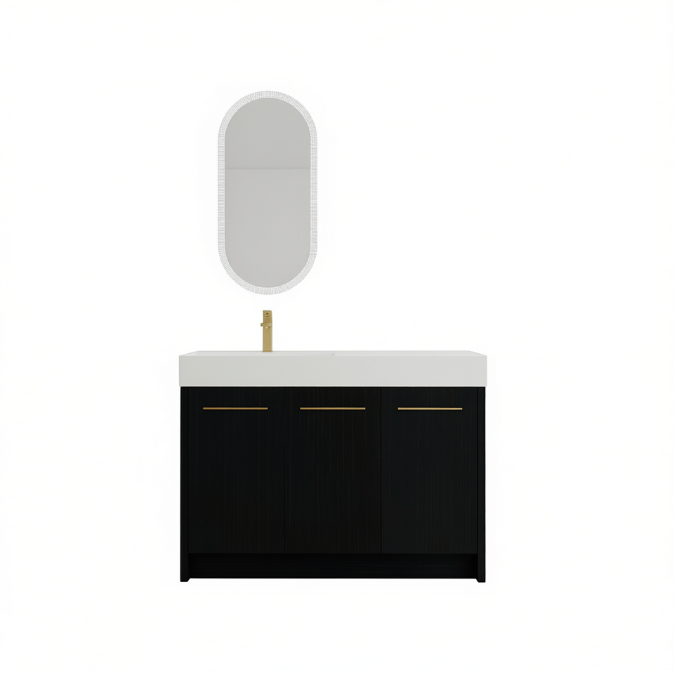 Meuble-lavabo autoportant 48 pouces avec vasque en résine, porte à fermeture douce, finition foncée moderne, miroir inclus