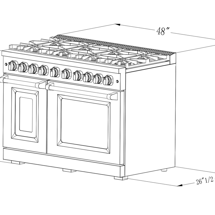 7.0 Cu. Ft. 48" Gas Range Hood with 7 Burners Convection Double Oven Stainless Steel Griddle for Household Use