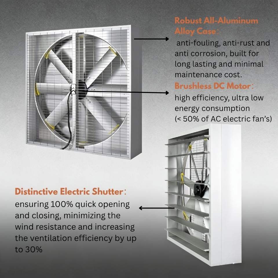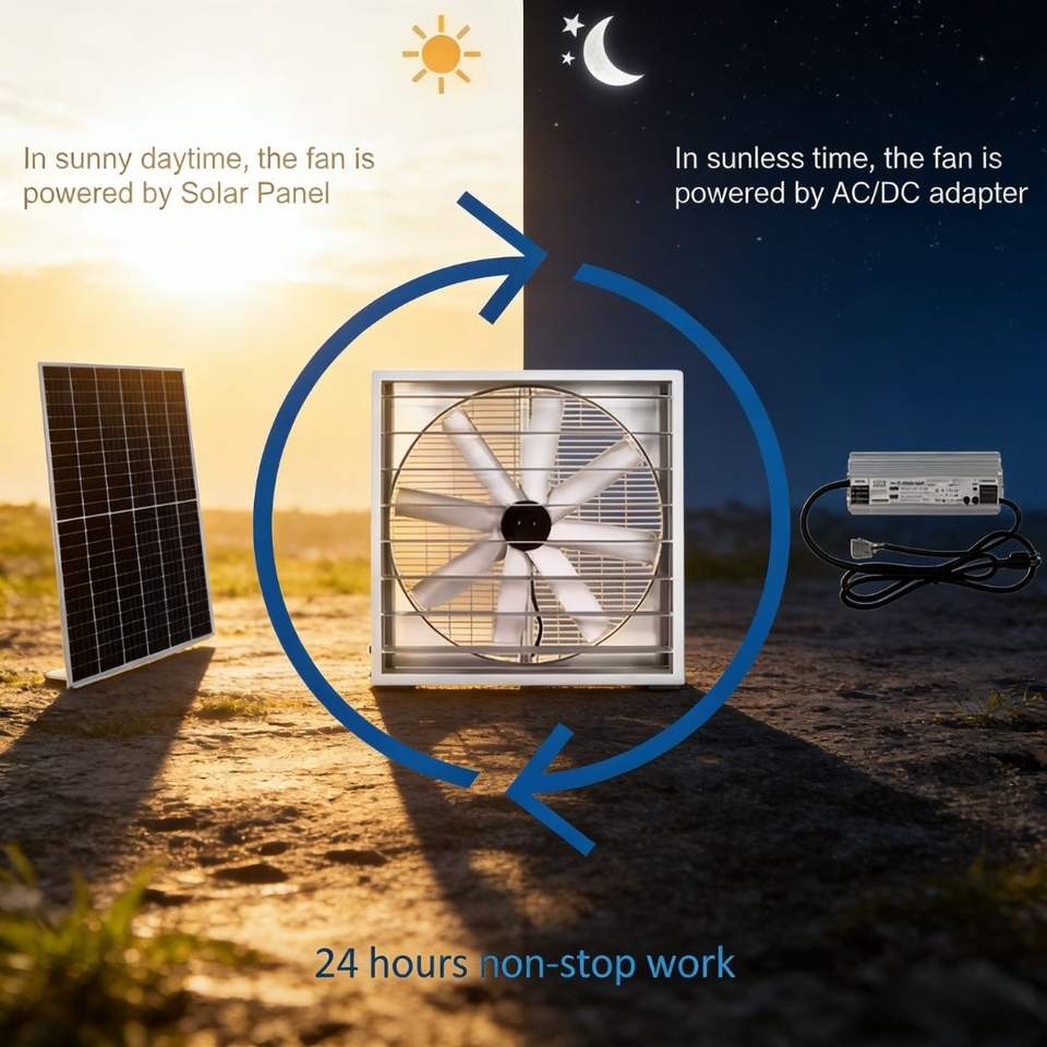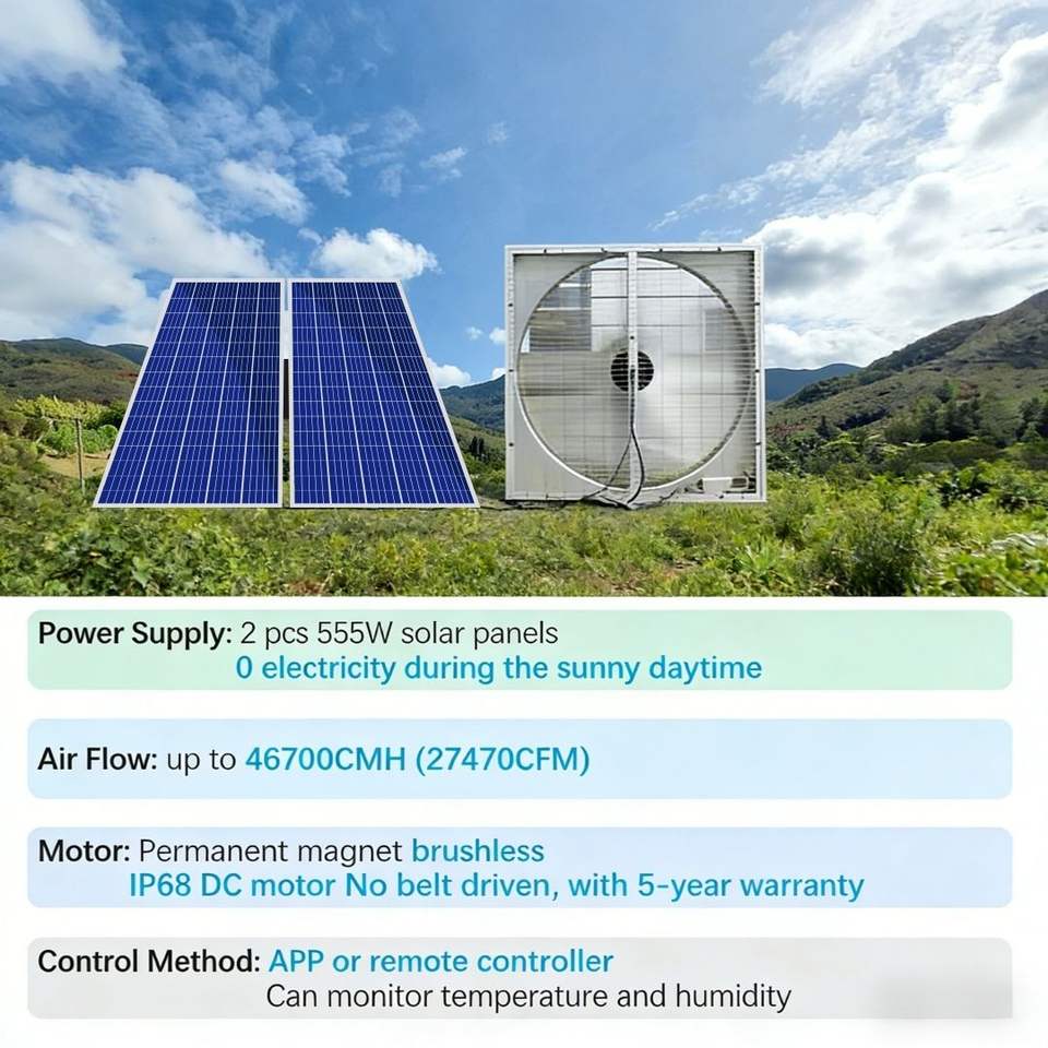 Ventilateur mural solaire robuste de 48 pouces, extracteur d'air industriel pour l'élevage de volailles, les fermes d'ovins et les serres