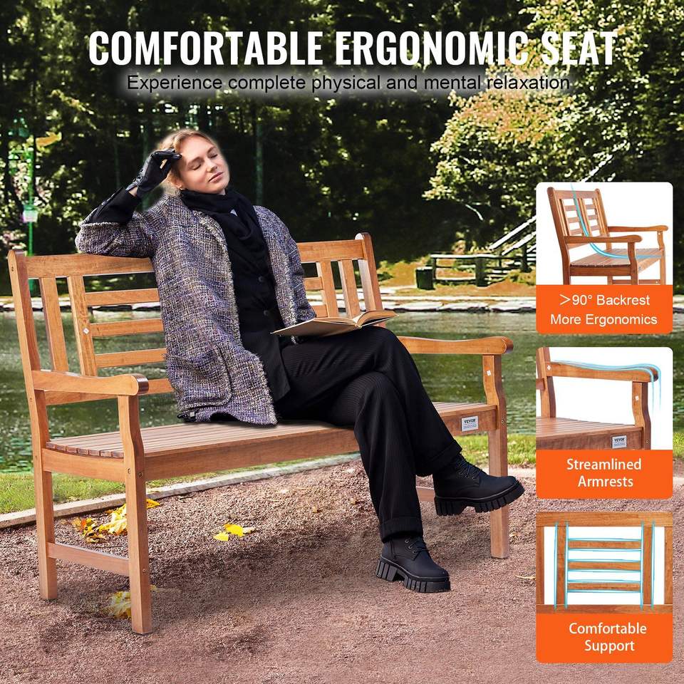 Banc d'extérieur en bois de 48 pouces avec dossier et accoudoirs, banc de jardin pour extérieur, capacité de charge de 700 lb, bancs de patio