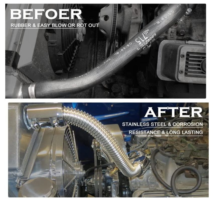 Kit de tuyaux flexibles pour radiateur en acier inoxydable de 48 pouces avec bouchons, tuyau supérieur/inférieur pour radiateur de voiture, kit de tuyaux pour radiateur UHR48 12256 EPAA01G48
