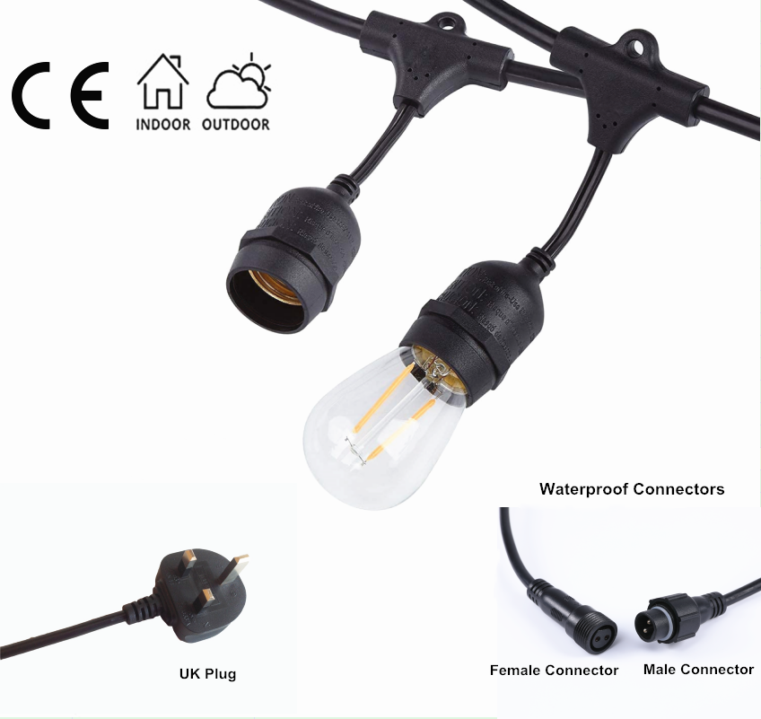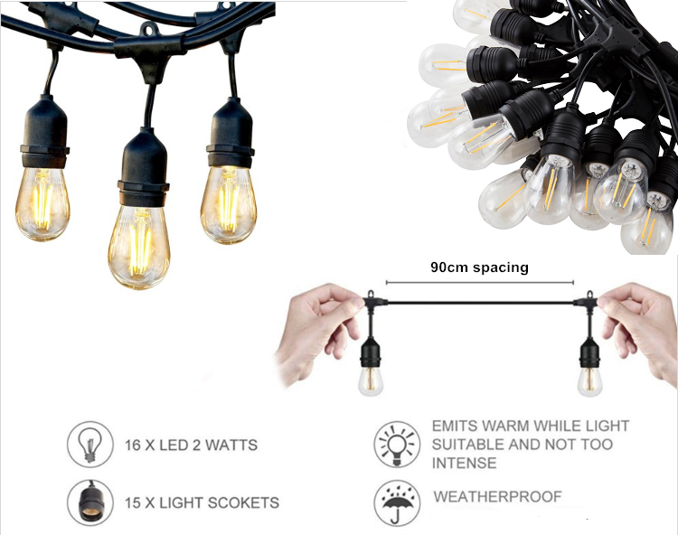 Guirlande lumineuse suspendue de 48 pieds, fabriquée en Chine, pour extérieur, jardin, bistrot, patio, camping, décoration