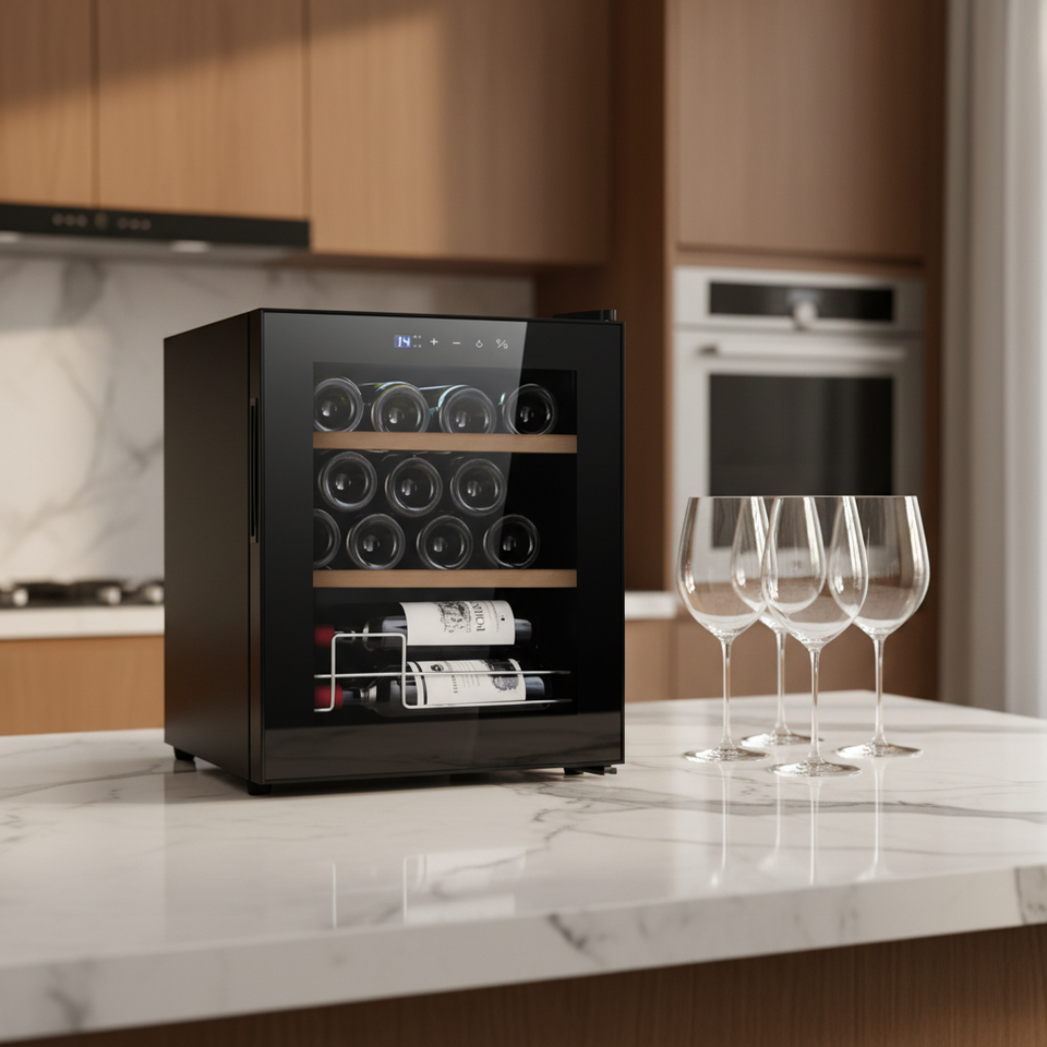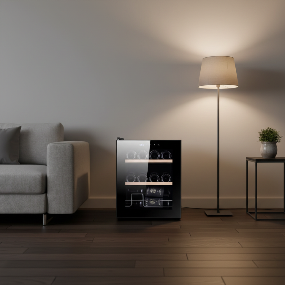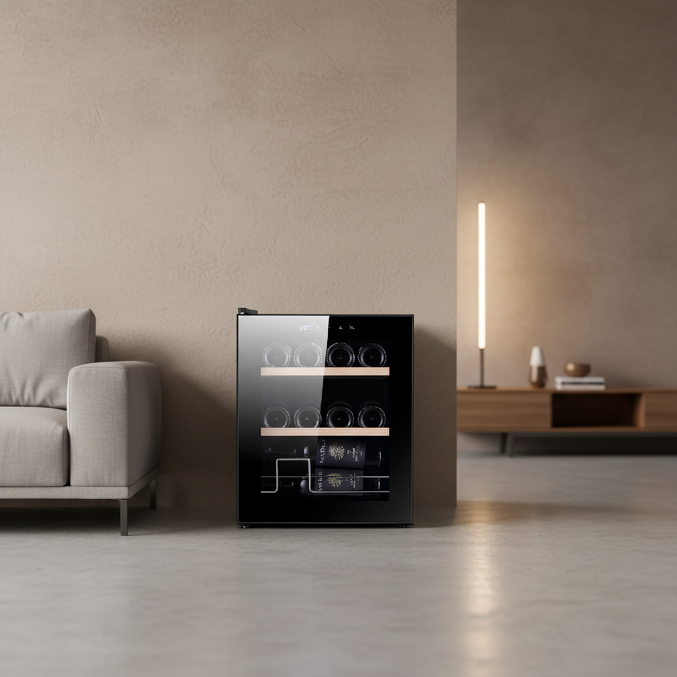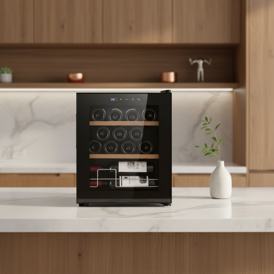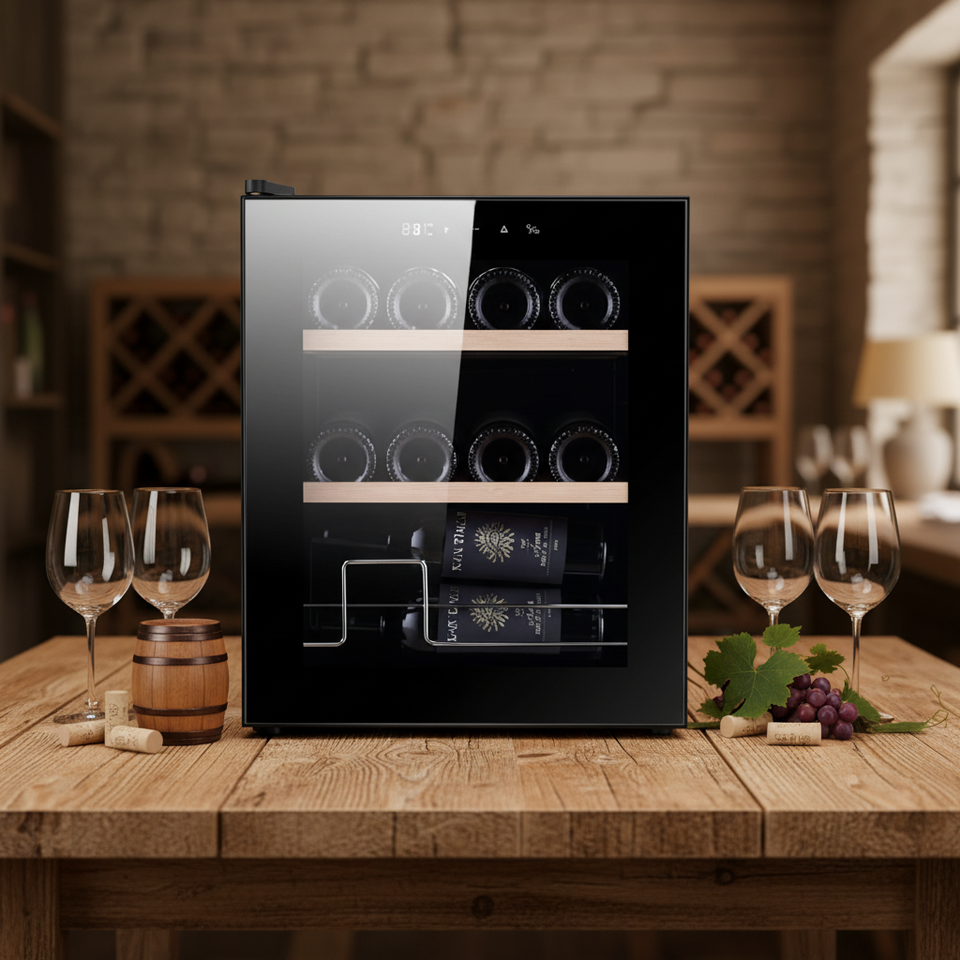 Réfrigérateur à vin 48L pour 15 bouteilles, mini cave à vin avec thermostat réglable, cave à vin domestique