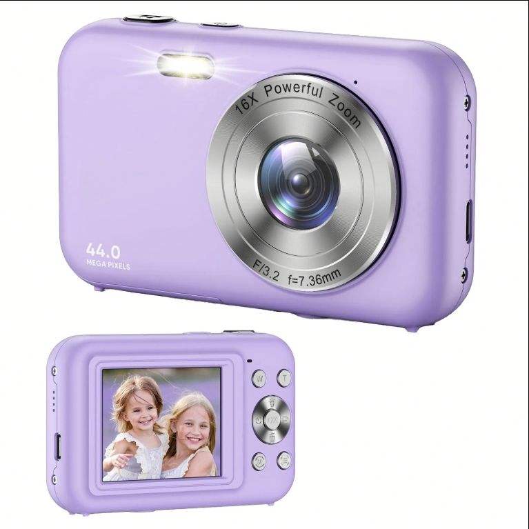 Appareil photo pour enfants 48MP avec écran LCD de 2,4 pouces, vidéo HD 1080P, grand angle de 180°, mémoire intégrée jusqu'à 128 Go - Plastique pour enfants