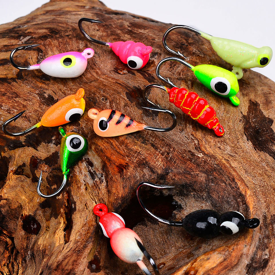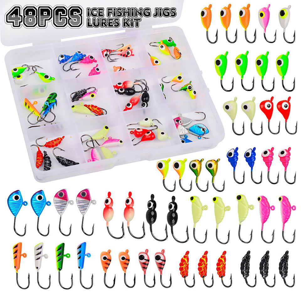 Ensemble de 48 micro-hameçons lumineux pour la pêche sur glace en hiver, hameçons pour vers de soie, pupes, racines, mini-appâts pour la pêche au panfish, au crappie et à l'achigan