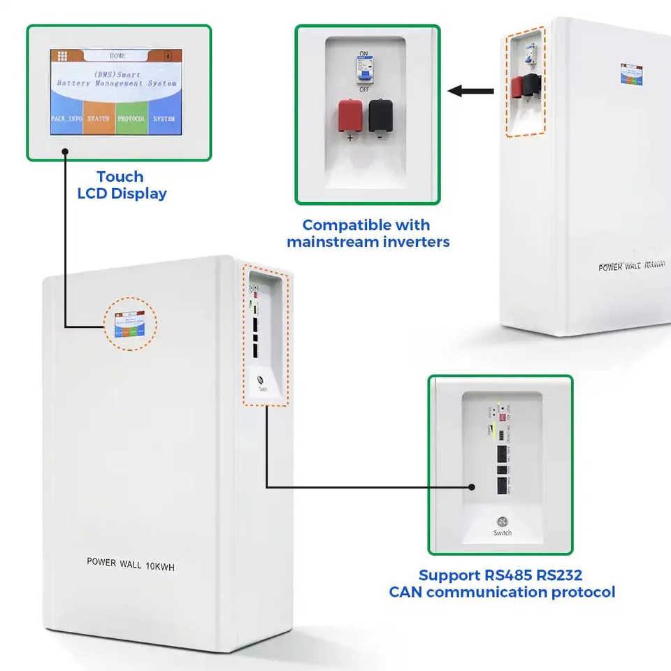 48V 204AH Home Lithium Battery Home Energy Storage Solar Wall Power 10kwh 5kwh 10kwh Battery Pack 51.2v Lifepo4 Home Use