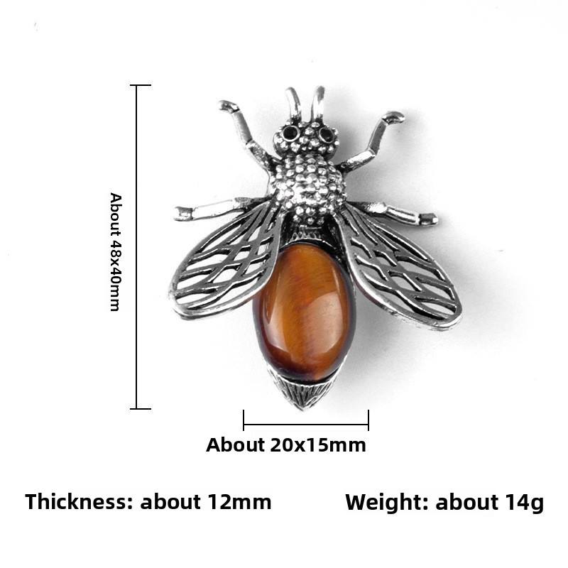Collier pendentif broche en pierre semi-précieuse agate incrustée de cristal, thème abeille, double usage, 48 mm