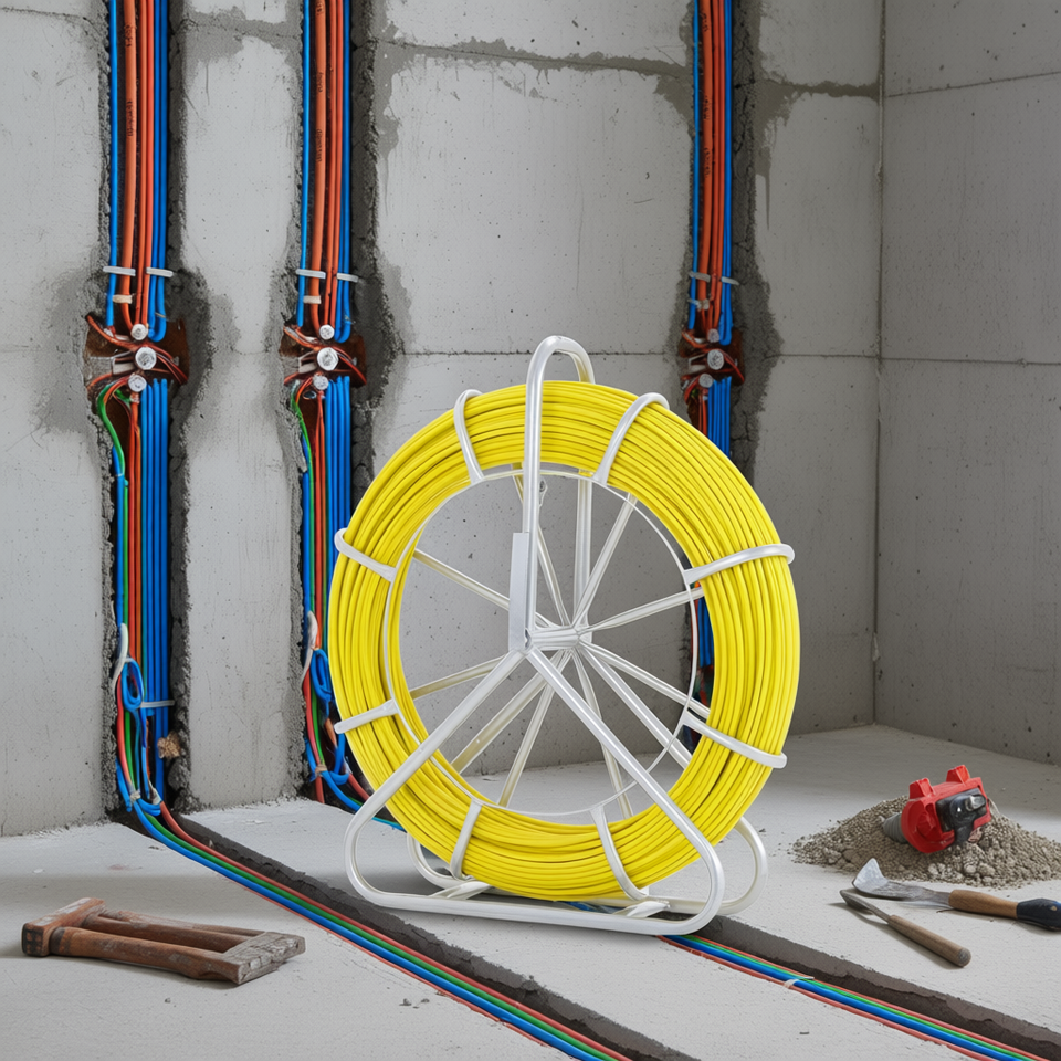 Tire-câble en fibre de verre de 492 pieds (1/4 po) avec support de bobine en acier pour le tirage de câbles dans les conduites