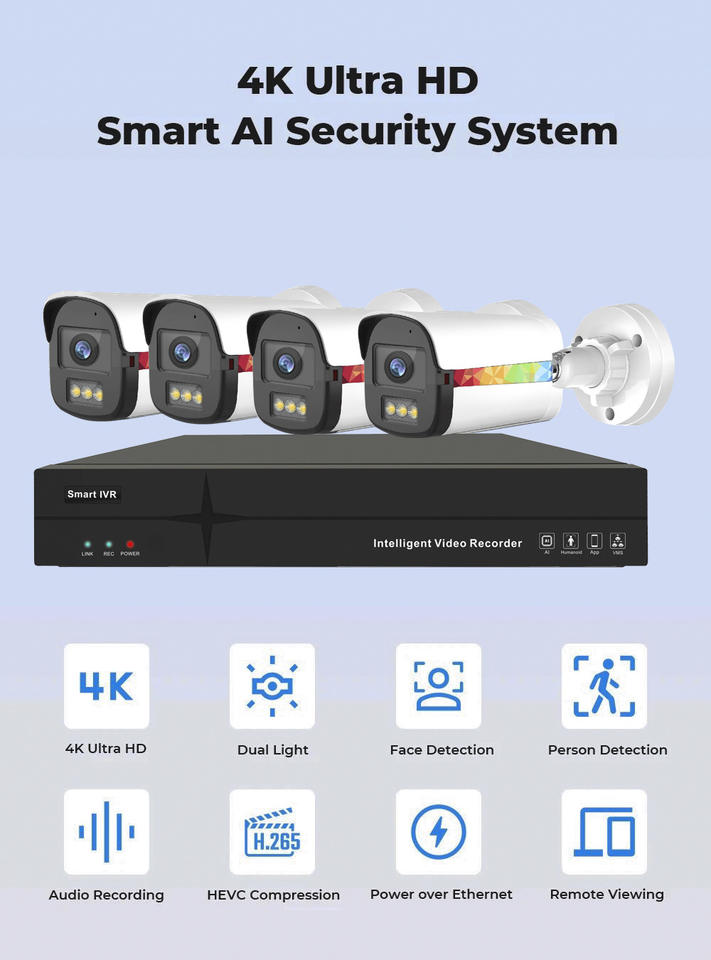 Audio bidirectionnel, Reconnaissance des visages, L'homme De Suivi De Mouvement, Vision nocturneUsages spéciaux