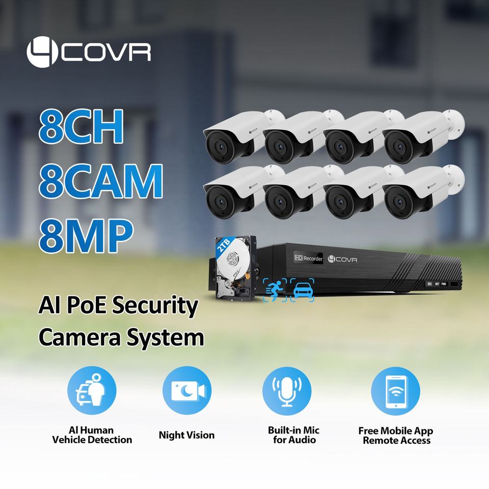 Système de caméra CCTV 4COVR 8 canaux 4K PoE NVR, 8 caméras 8MP, vision nocturne IR extérieure, système de surveillance de sécurité PoE IP SMD AI