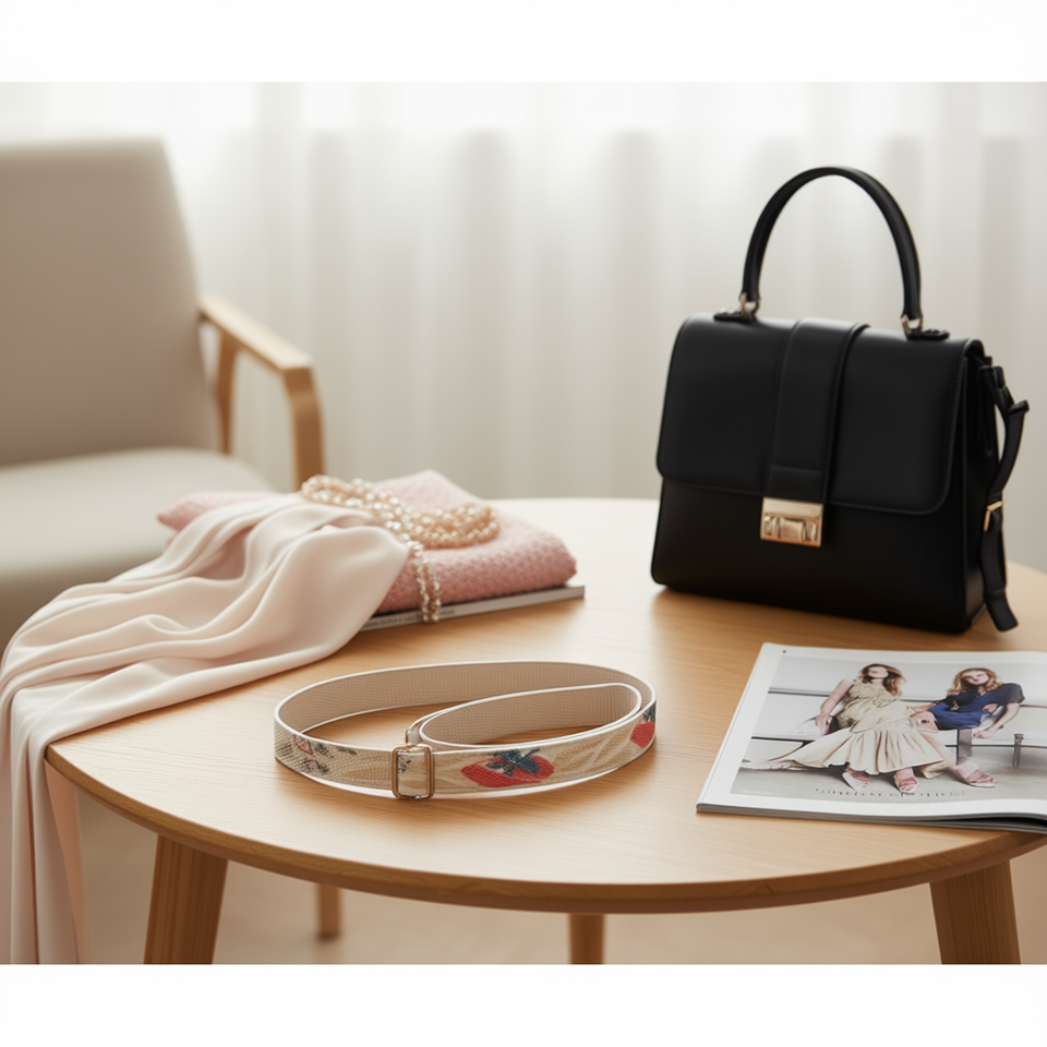 Sangle de sac en sangle de 4 cm, petite, florale, beige, pour sac à main