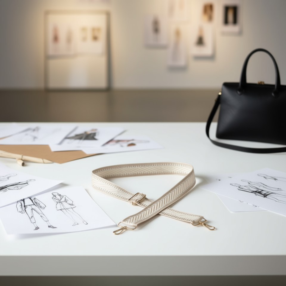 Sangle en tissu de 4 cm beige pour sac, emballage transparent de 120 pièces