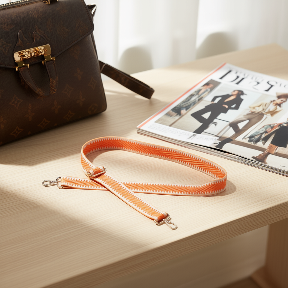 Sangle en toile de 4 cm orange pour sac avec crochets métalliques