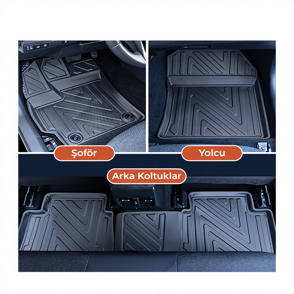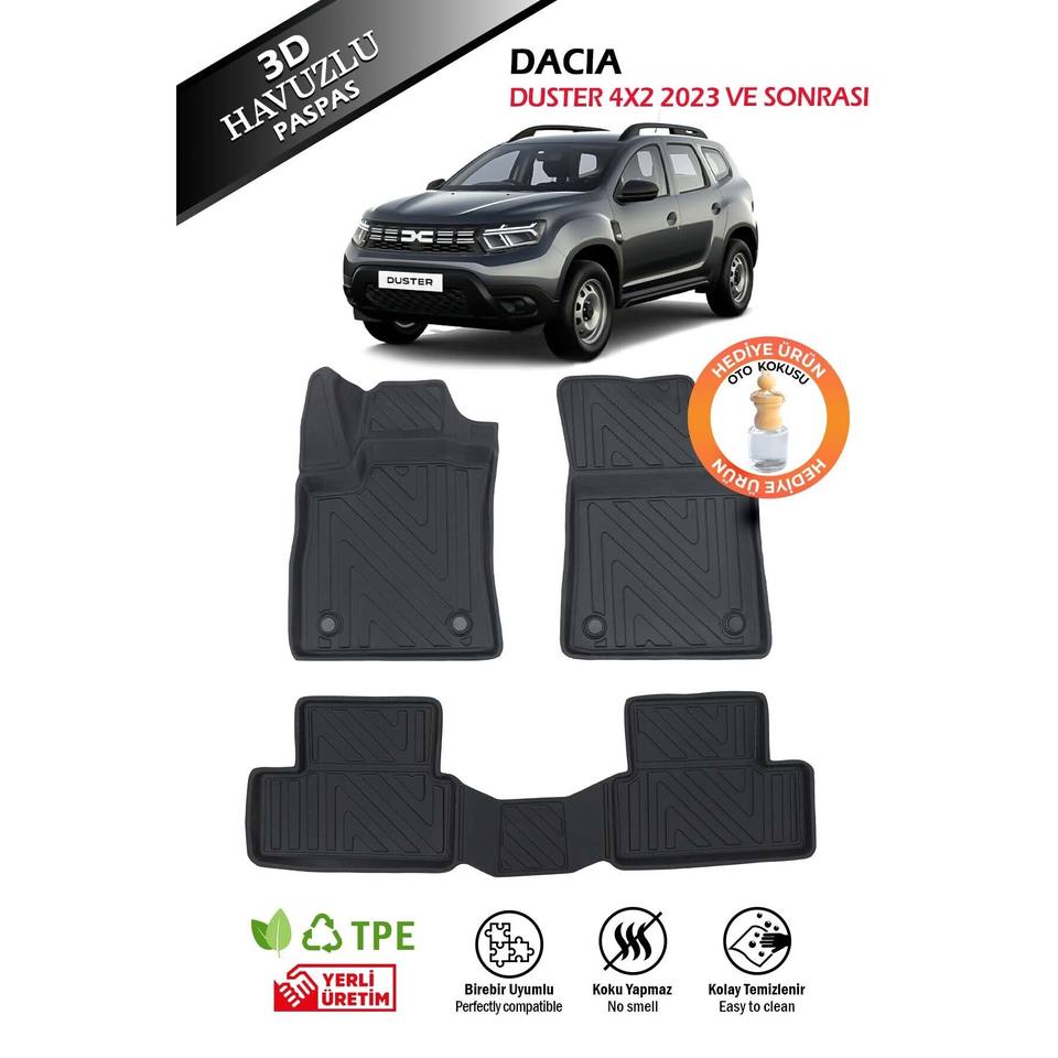 Ensemble de tapis de voiture 4D noirs avec motif piscine TR Origin compatible avec Dacia Duster 4X2 2023 et modèles ultérieurs