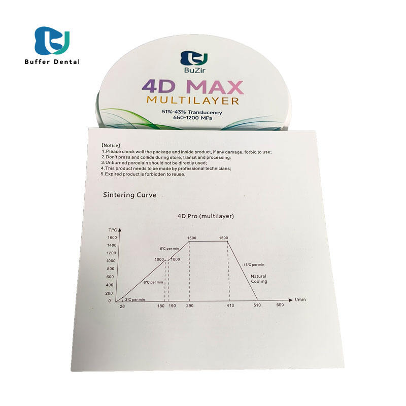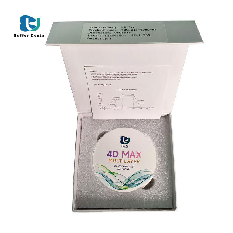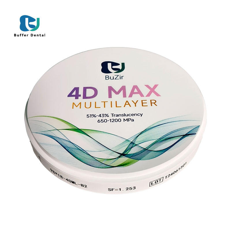Bloc de zircone multicouche 4D Max à haute performance pour les laboratoires dentaires, les cliniques dentaires, les matériaux de dentisterie en fauteuil, les couronnes et les bridges