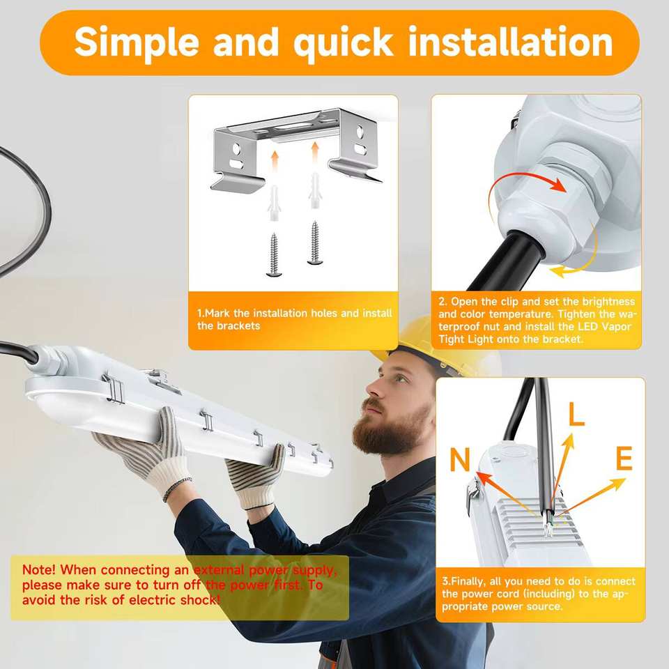 4FT 60W LED Garage Light, 5-CCT Selectable (3000K–6500K), IP65 Waterproof, Triple Protection
