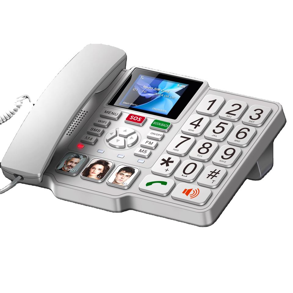 Téléphone d'appel d'urgence 4G pour personnes âgées 5 cadrans rapides Bouton rouge SOS Emplacement SIM unique Téléphone fixe sans fil