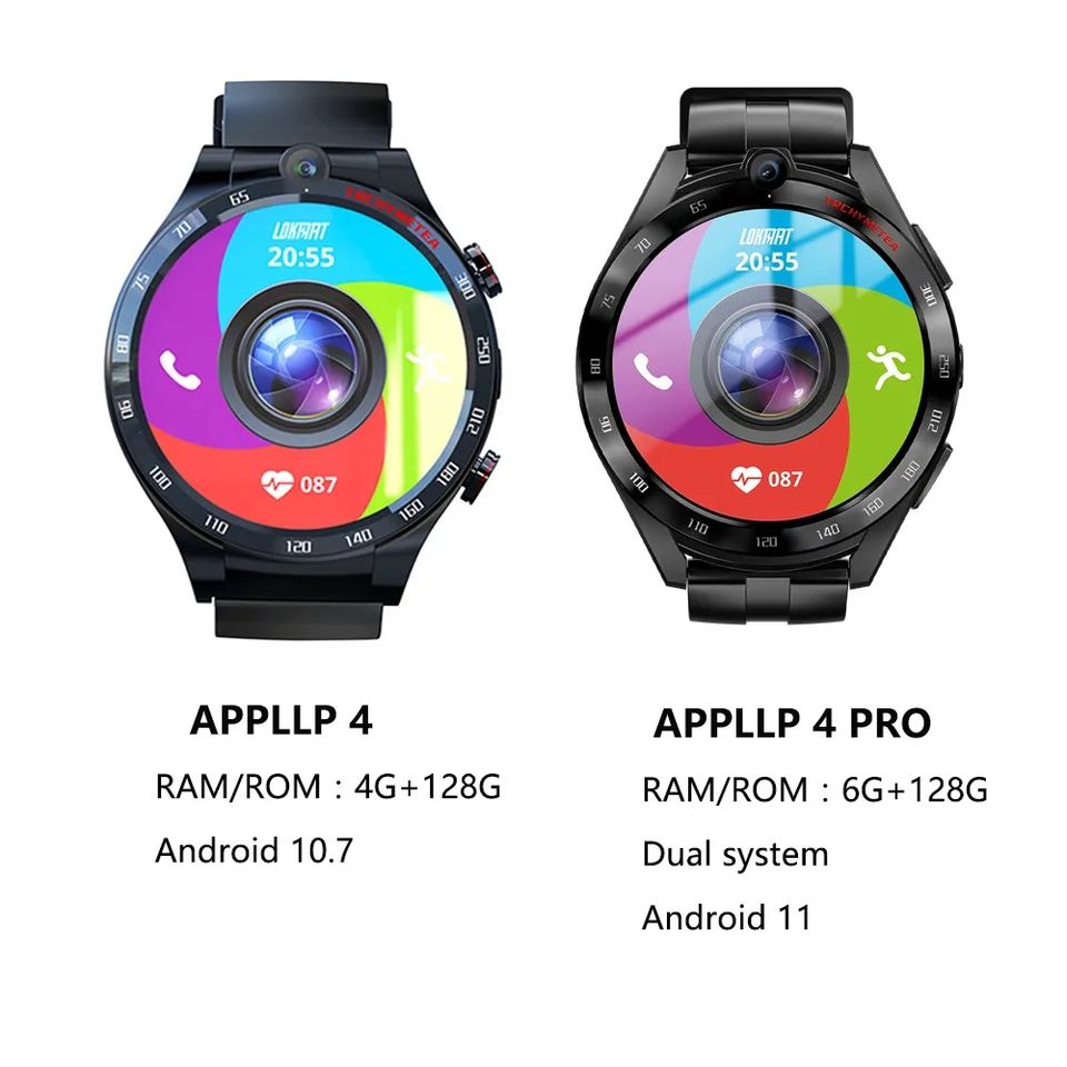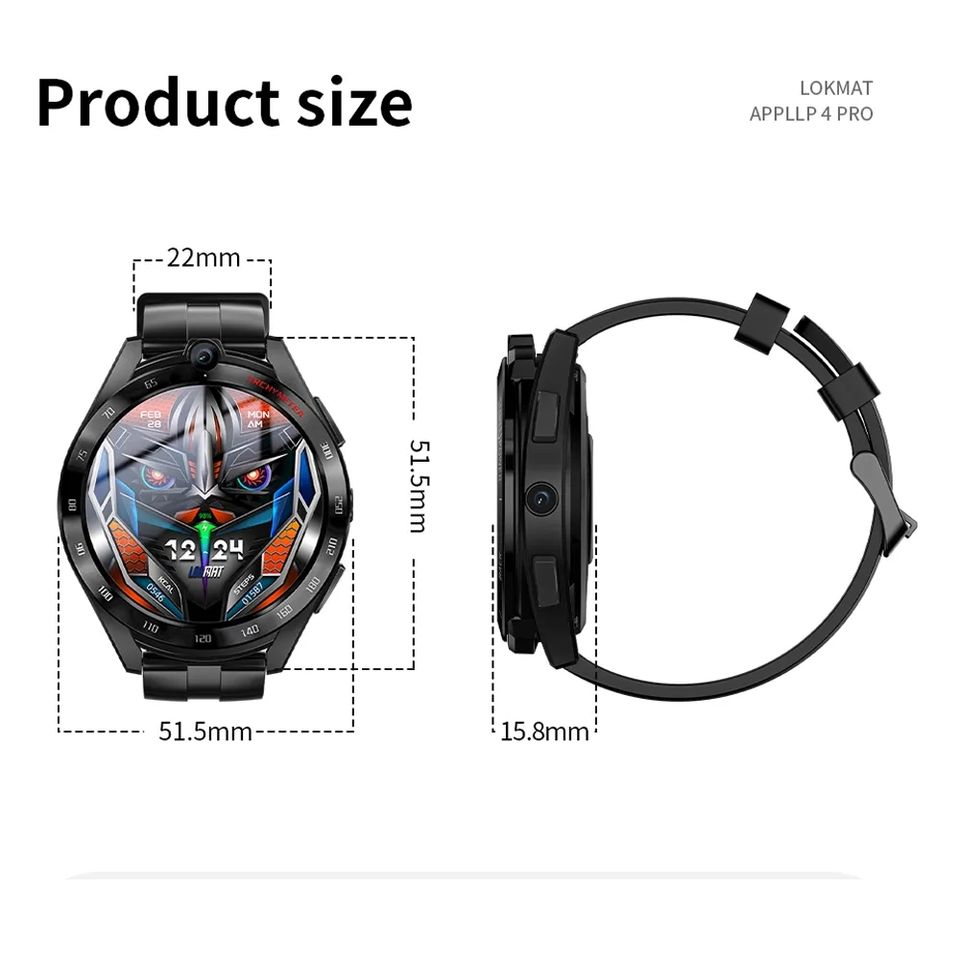 4G LTE LOKMAT APPLLP 4 PRO 6GB 128GB Montre intelligente Android 11 Sports Fitness Tracker GPS Wifi Hommes Caméra Appel vidéo Montre intelligente