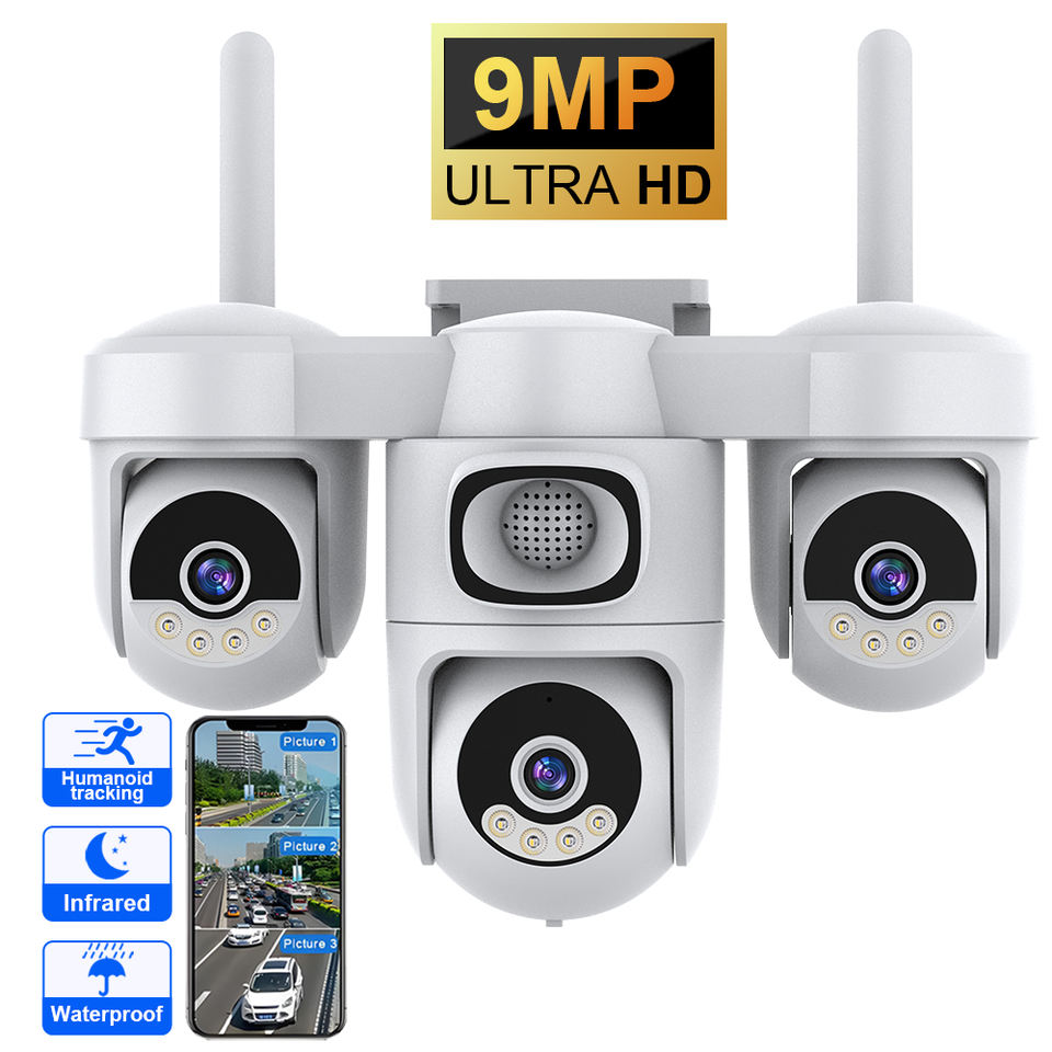 Caméra PTZ solaire 4G LTE, caméra AOV AG623SR, triple objectif 9MP, 12000mAh, 6 moteurs, puce HiSilicon, durable pour la sécurité extérieure