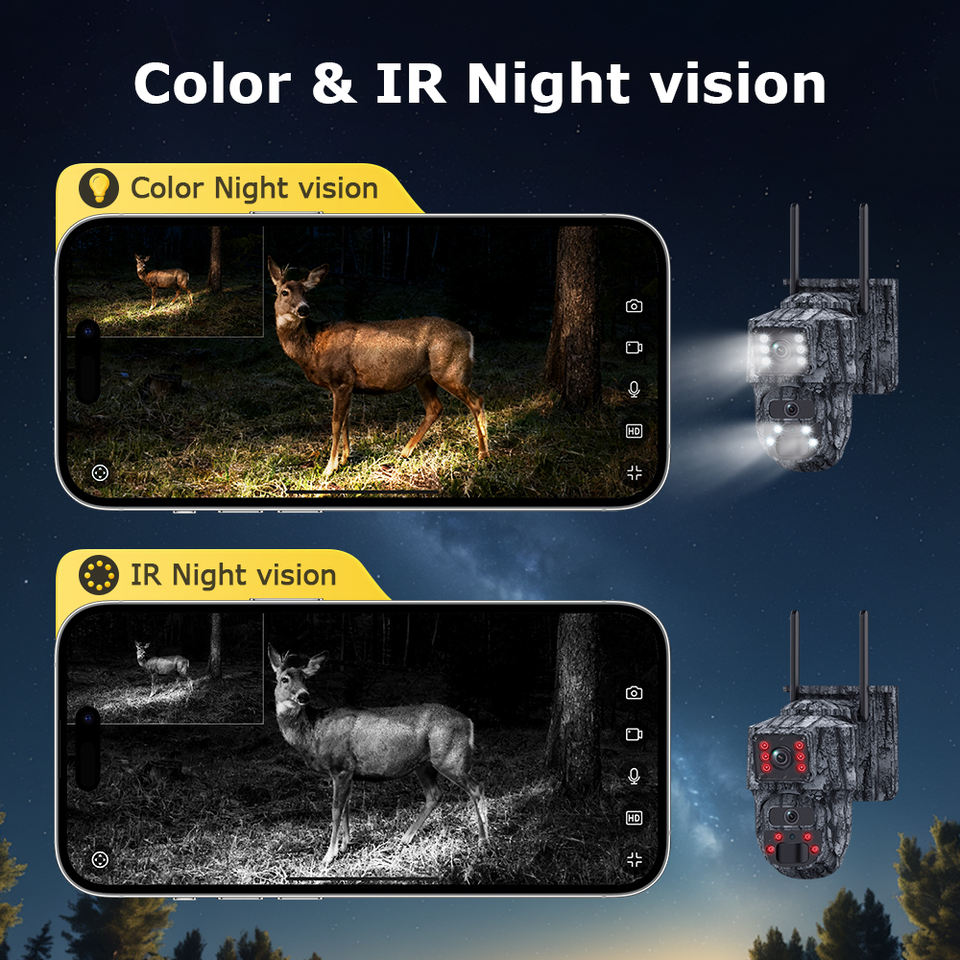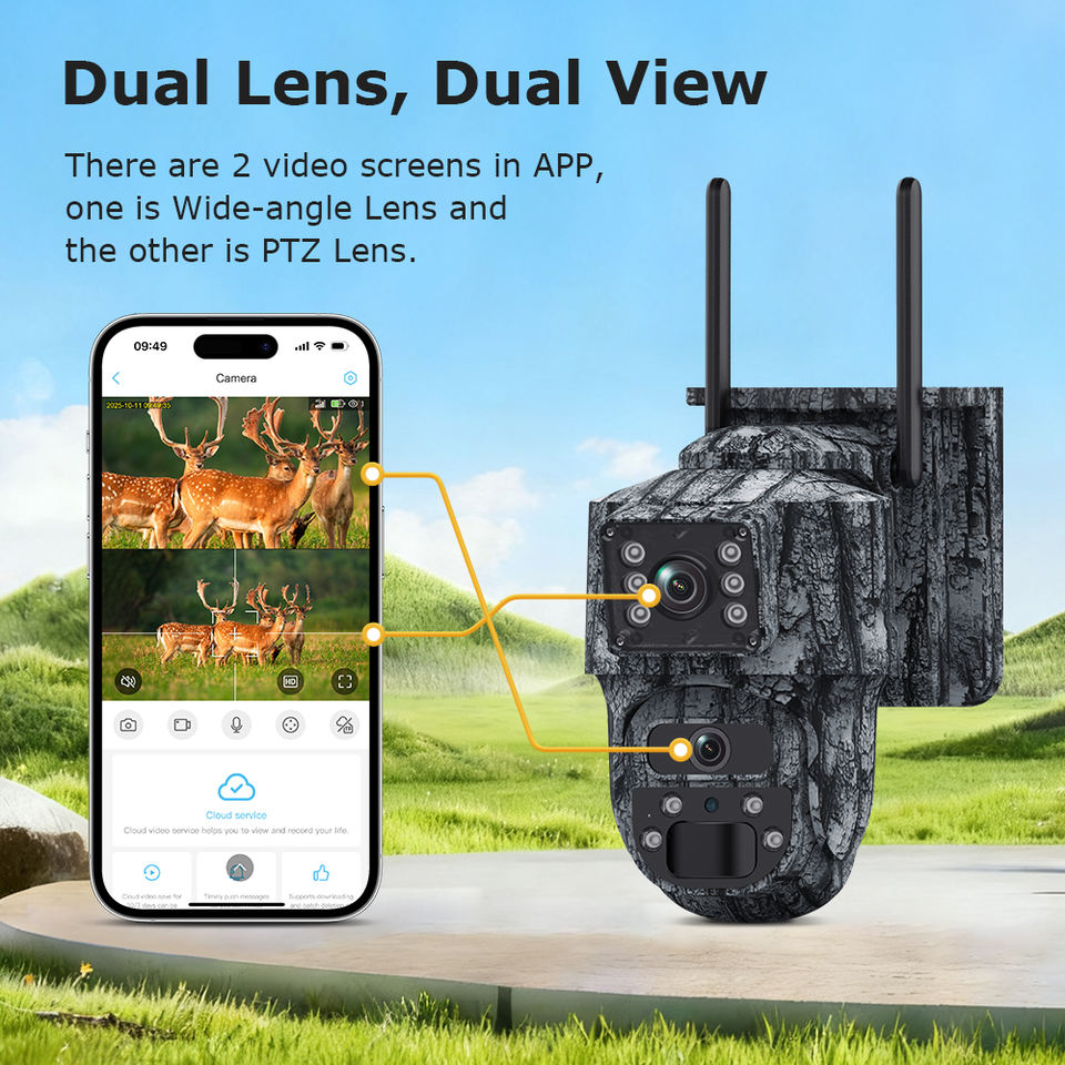 355°, AI Detection: Human and vehicle recognition with auto tracking, Night Vision: Four white LEDs and eight infrared LEDs with effective range up to 25 m, GPS Module: Integrated GPS for geofencing and location tagging, Audio: Two-way communication via built-in microphone and speaker, Weatherproof Rating: IP66 housing with -20 °C to +60 °C operating range, Storage: MicroSD slot supporting cards up to 128 GB plus cloud storage support