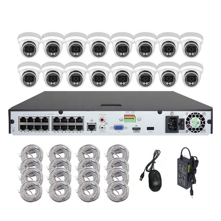 Systèmes de caméras de sécurité PoE couleur 4K 16 canaux, caméra IP intelligente à double objectif Matel IP66 avec audio, kit NVR 8MP 8CH 4CH pour caméras IP CCTV