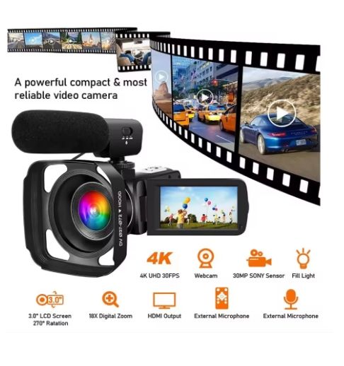 Caméra Caméscope Vlogging 4K 56MP Ultra HD pour TikTok YouTube, Vision Nocturne IR Numérique WiFi Avec Microphone