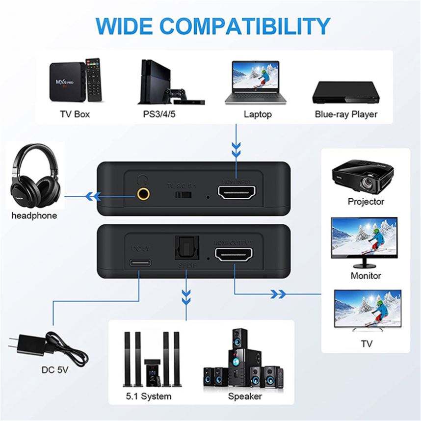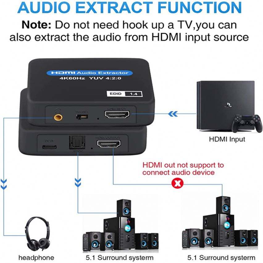 Adaptateur convertisseur extracteur audio 4K 60Hz HDMI 4K vers HDMI optique Toslink SPDIF + adaptateur convertisseur de sortie audio 3.5mm PS5 PS4