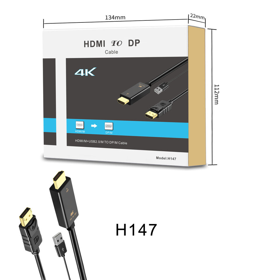 Adaptateur/convertisseur HDMI 4K 60Hz vers DisplayPort HDMI mâle + dongle de sortie USB2.0 vers DP mâle avec câble audio 1.8M