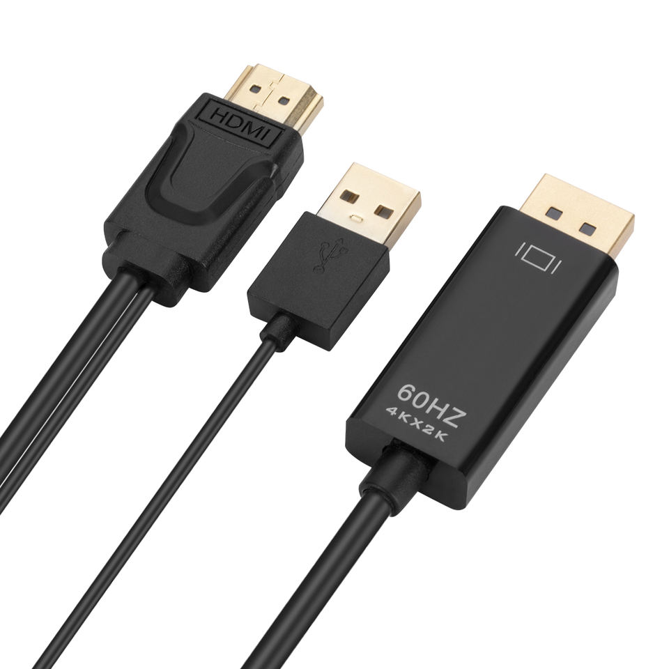 Adaptateur/convertisseur HDMI vers DisplayPort 4K @ 60Hz avec câble audio 1.8M Dongle de sortie USB2.0 vers DP mâle Accessoire audio et vidéo