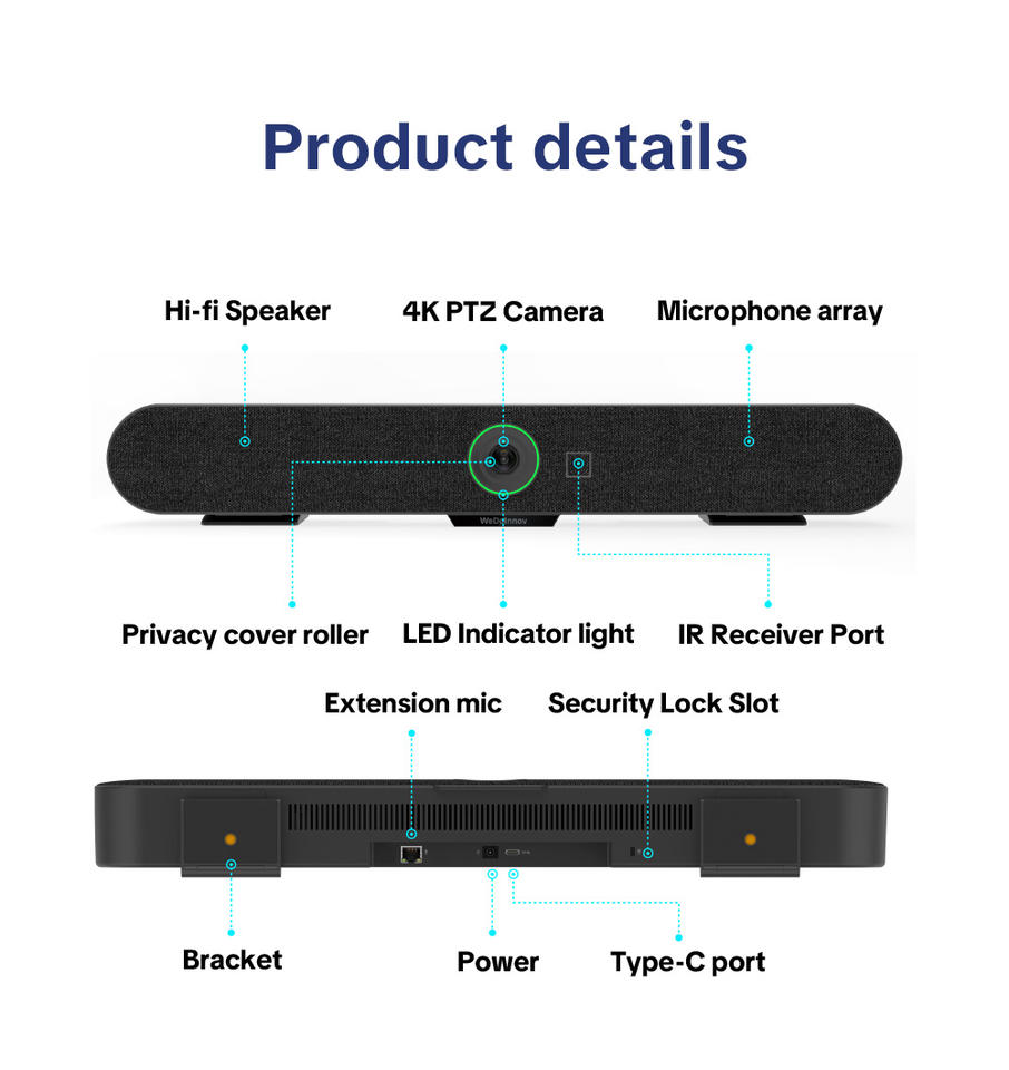 4K AI VideoBar with 3x Optical Zoom Built-in 6 Mic Array, 4 Wireless Mics and Auto Privacy Cover for Medium to Large Rooms