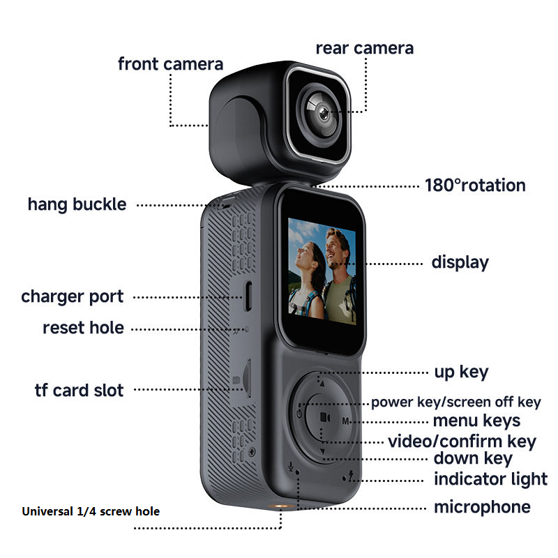 Écran d'affichage:Écran IPS de 1,5 pouces avec une résolution de 320*240.