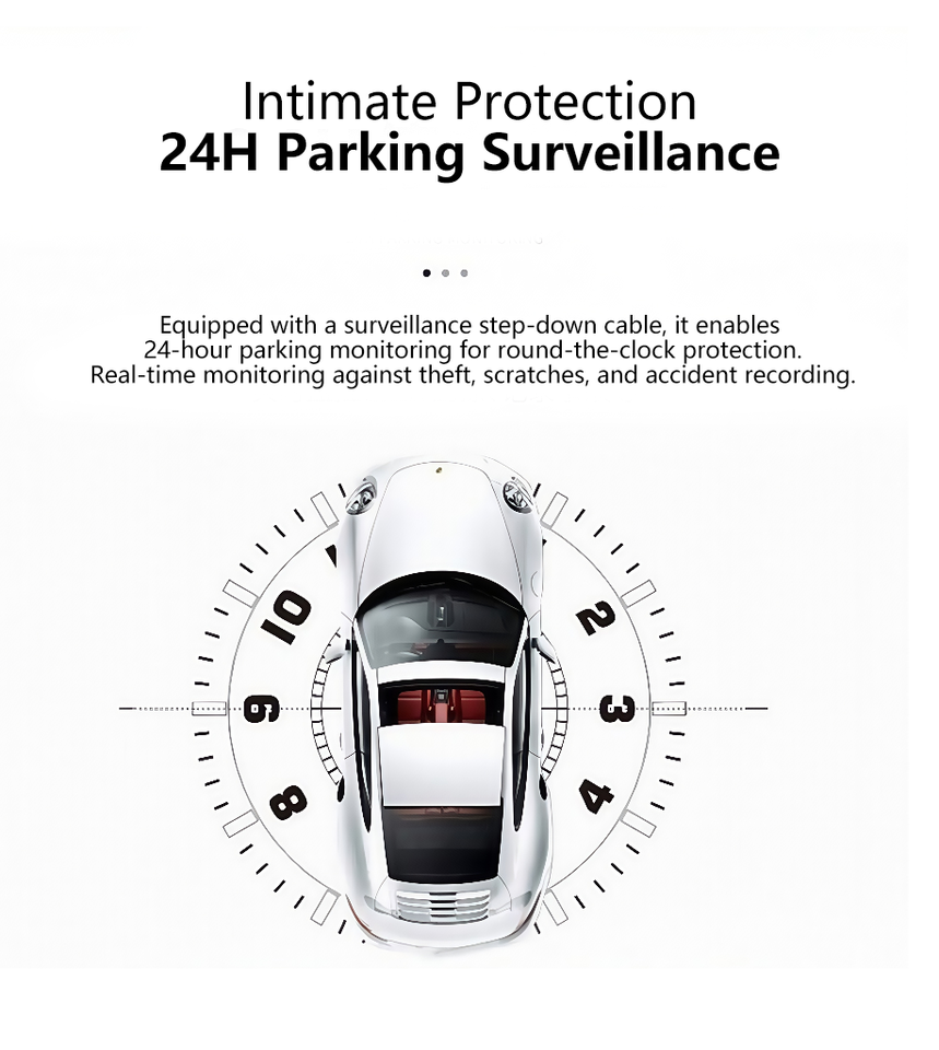 Moniteur de stationnement:Soutenir la surveillance du stationnement 24h (avec kit ACC Hardwire)