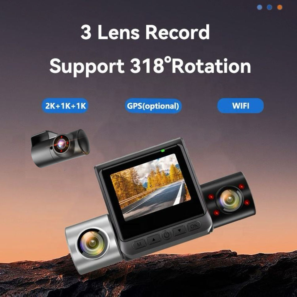 Caméra de tableau de bord 4K 2 pouces 3 caméras Caméra de tableau de bord à capteur G avec vision nocturne Wifi Boîte noire de voiture DVR 3ch pour caméra de tableau de bord avant et arrière 4K