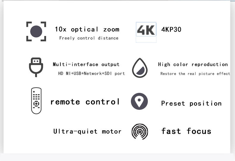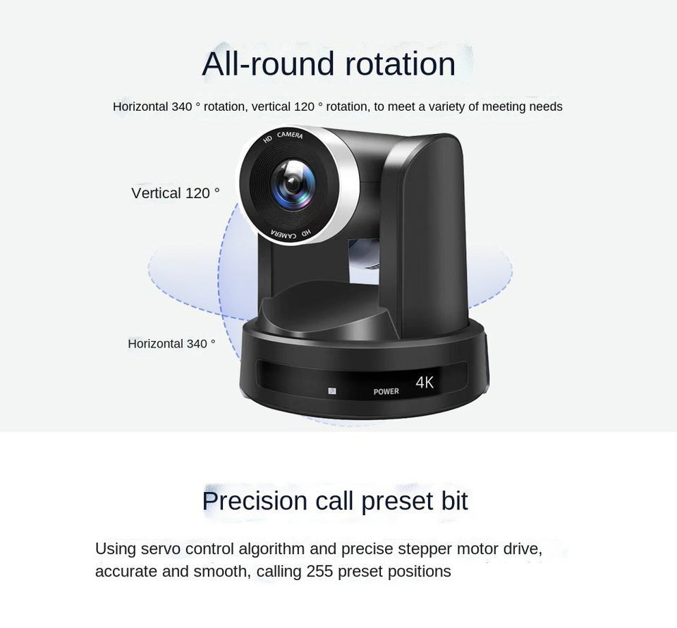 Caméra de conférence 4K Full HD 10x pour l'éducation et la diffusion en direct avec support mural manuel