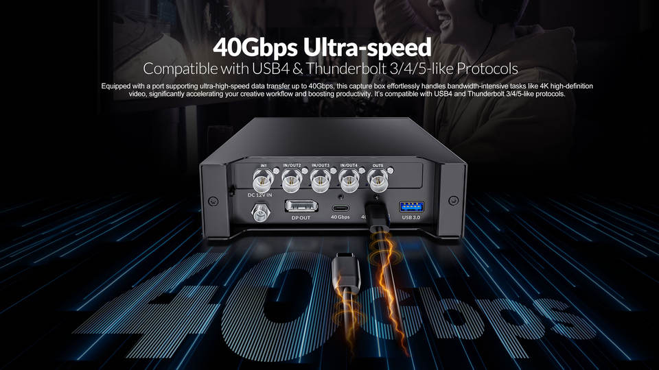 Station d'accueil HDMI 4K avec sortie en boucle - Station d'accueil 40 Gbps pour capture vidéo sans perte, OBS Studio, Windows/Linux - AVMATRIX TB-C12-4K
